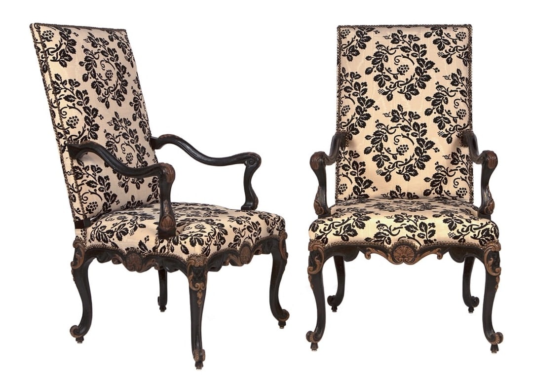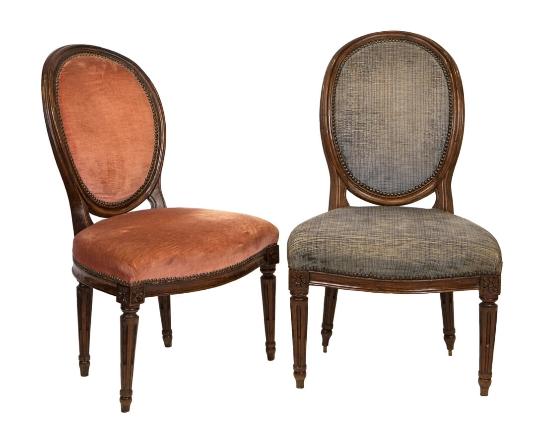 A pair of Louis XVI style upholstered walnut chairs, France 19th Century