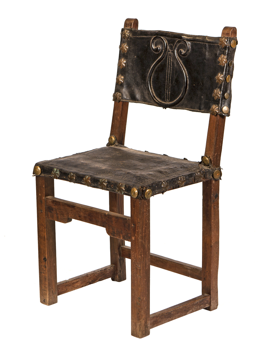 A Spanish embossed leather and walnut chair, Castille 17th Century