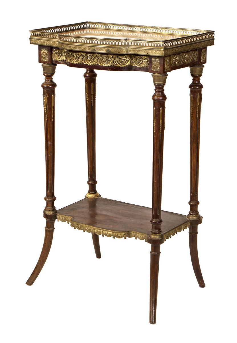 A Napoleon III marble top, brass mounted side table, Late 19th Century