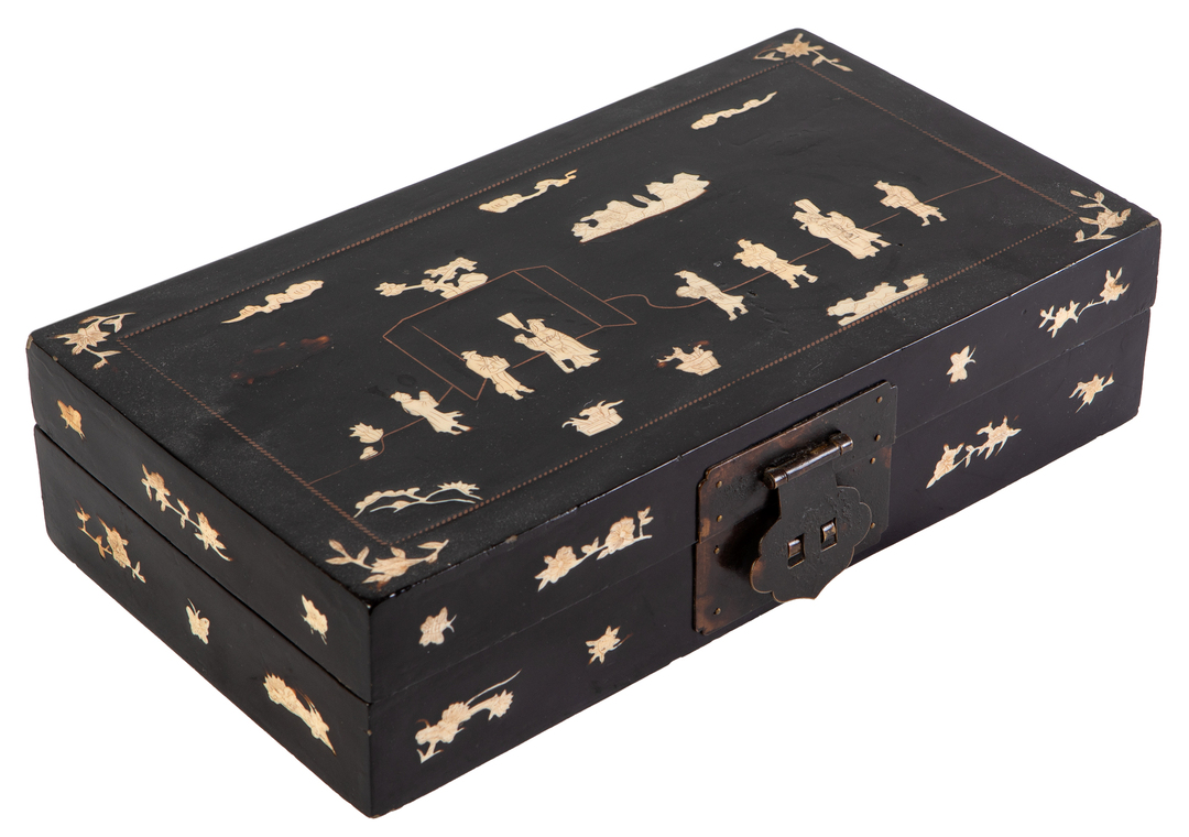 A Chinese bone inlaid ebonised wood box