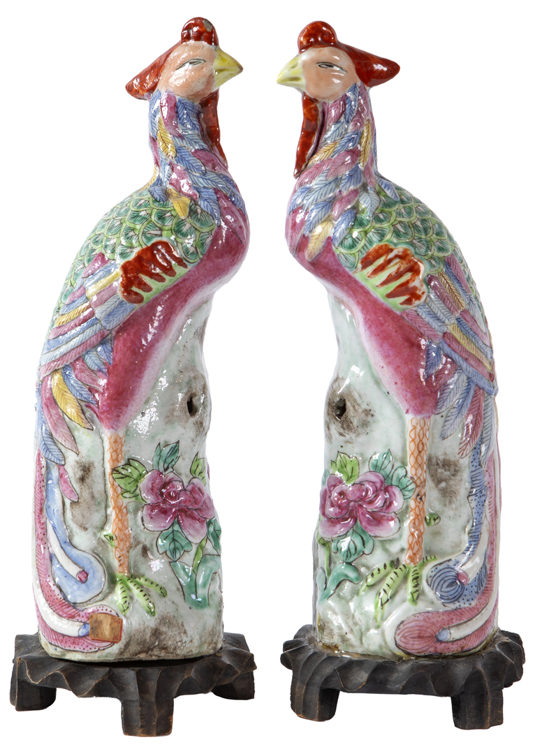 Pair of Chinese porcelain birds of paradise, following Chinese Export models, 20th century