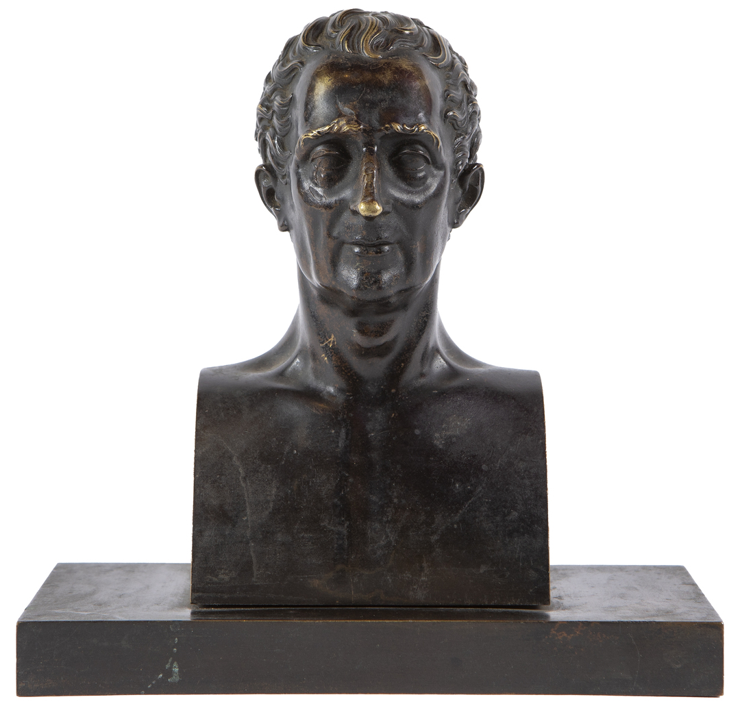 Bronze bust of a gentleman, with rectangular metal base, 19th century