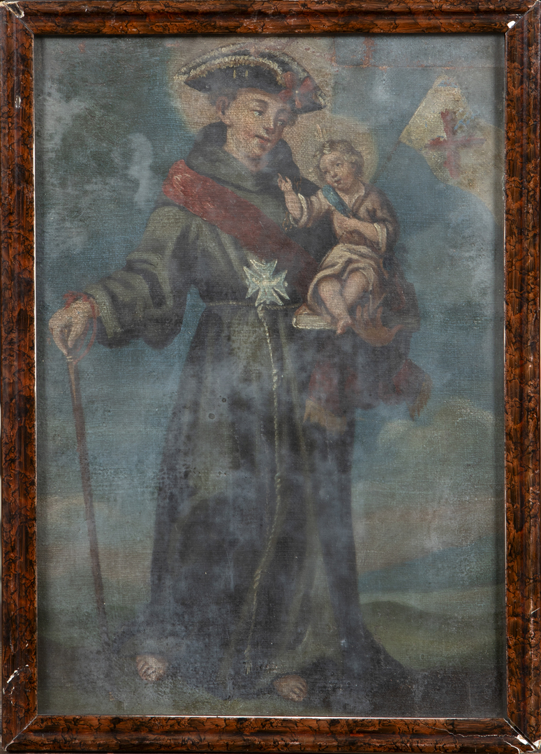 PORTUGUESE SCHOOL OF THE 18TH CENTURY"Saint Anthony Admiral"Oil on canvasDamages on the canvas29 x 20 cm100 - 150 €