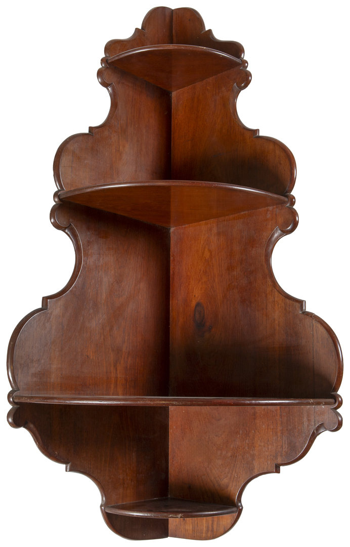 Corner mahogany hanging rack with carved decoration, Victorian Period