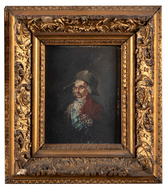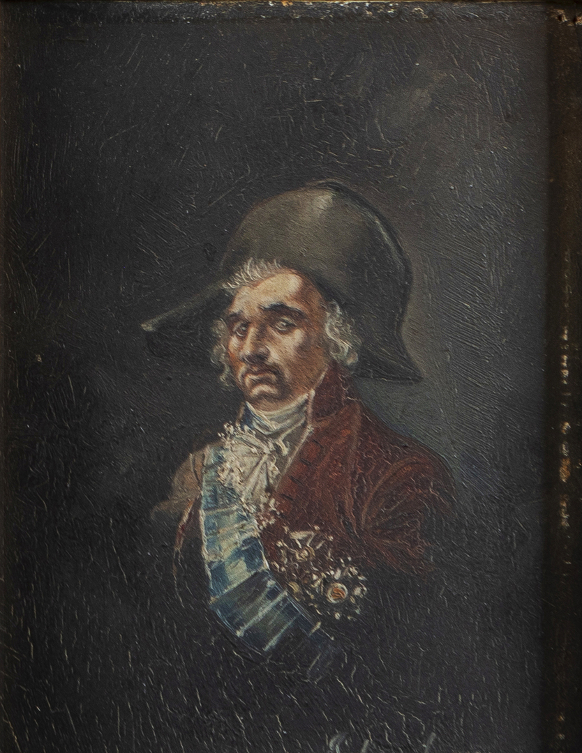 JULIAN LUCAS VILLAMIL (Madrid, 1865 - ?)Portrait of a gentleman with a bicorn hat and a red coat"