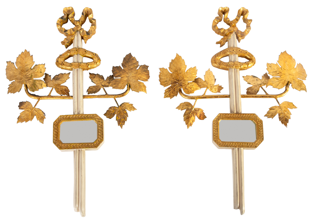 A pair of two light wall sconces with giltmetal leaves