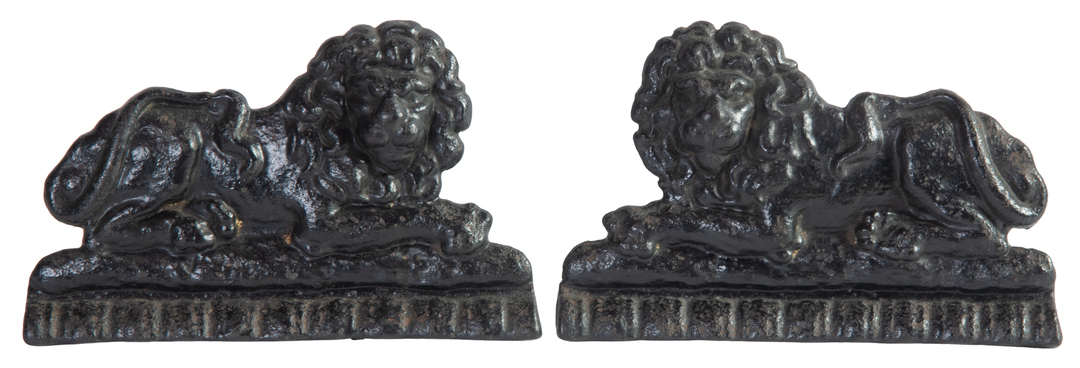 A pair of cast iron plaques depicting lions