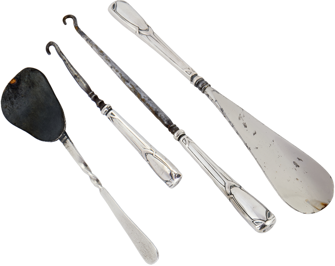 A set of three utensils with silver and silver-plated metal handles