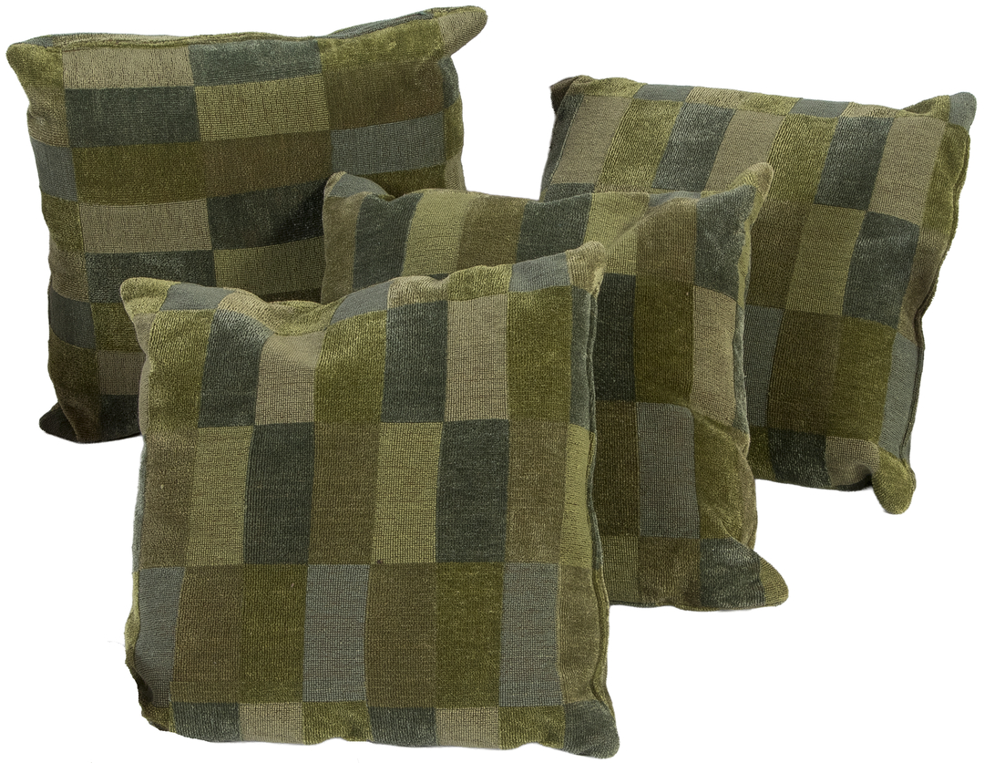 Set of four cushions with green checkered upholstery