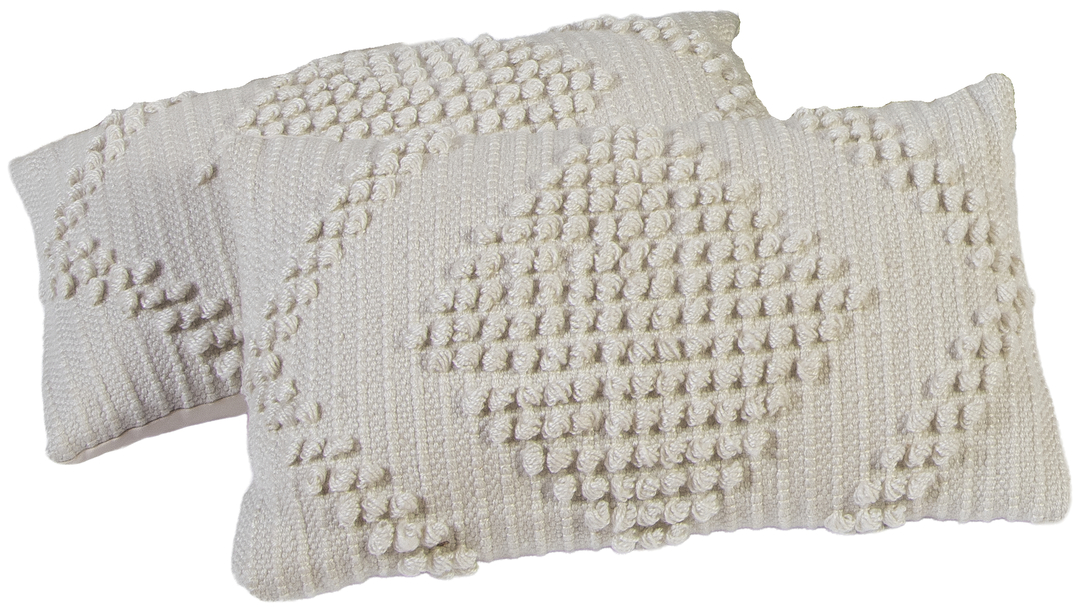 Two white crochet upholstered cushions