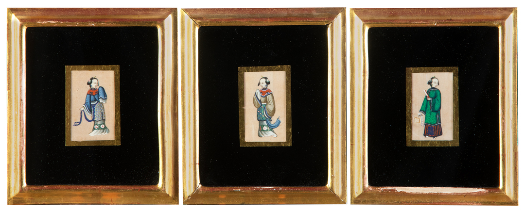 Set of three painted rice papers depicting Chinese peasants
