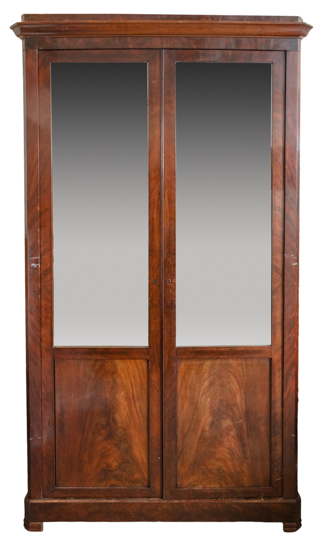 A mahogany and flamed mahogany veneered "armoire" Louis Philippe's period, mid 19th Century, with later mirror panels