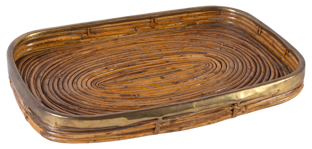 A wicker and brass tray