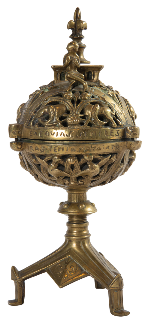 A chiselled bronze incense burner in the shape of a globe
