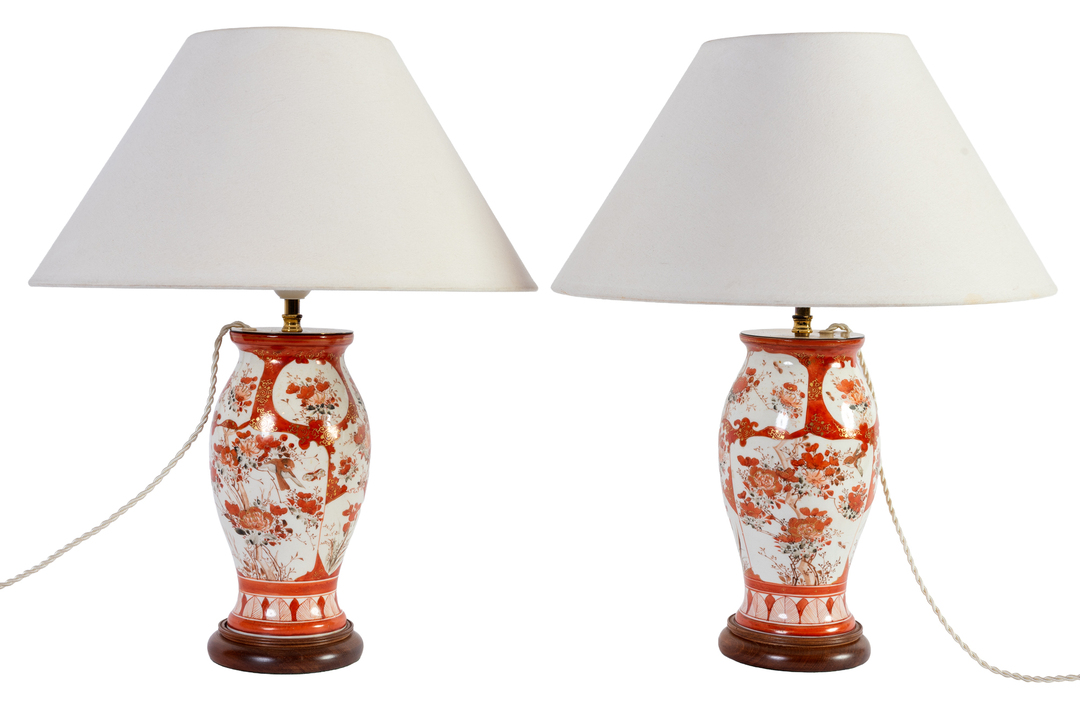 A pair of Japanese porcelain Kutani vases mounted as table lamps