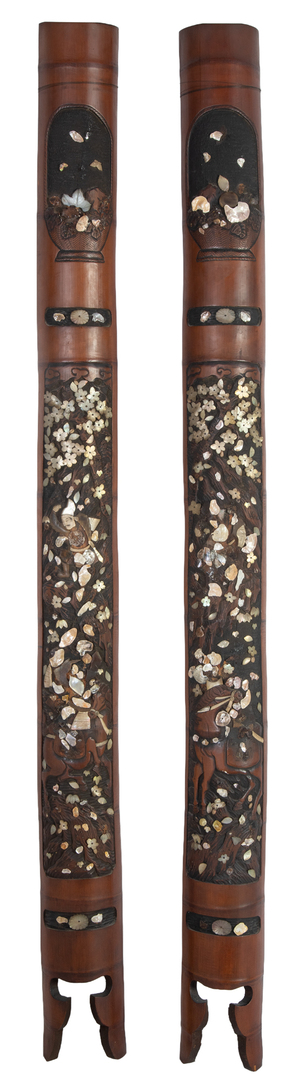 Pair of mother-of-pearl inlaid bamboo half canes. Japan, Meiji period, 19th century