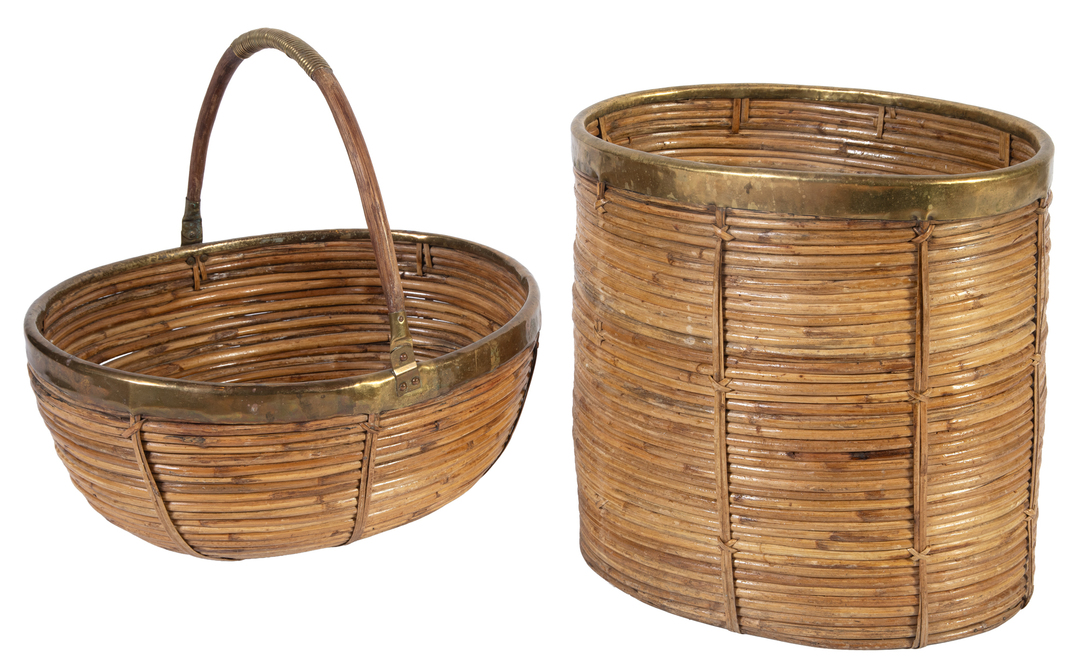 A stainless metal and faux-burlwood ice bucket, 70s - 80s