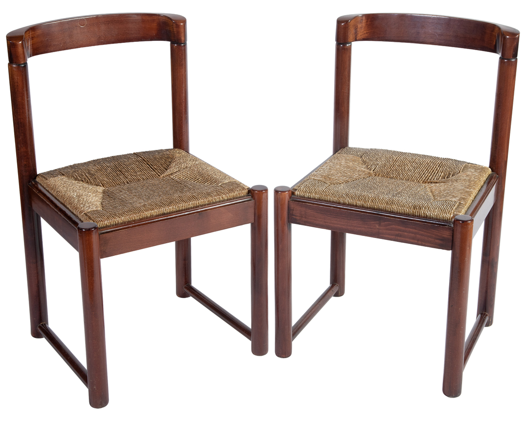 Pair of Nordic style mahogany chairs with wicker seats